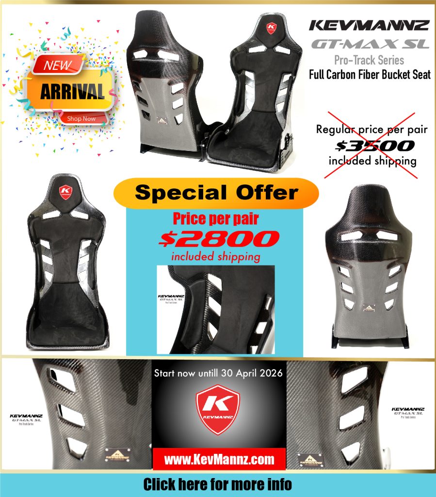 NEW ARRIVAL with special offer: KevMannz "GT-Max SL Pro-Tracking Series", our latest design full carbon fiber bucket seat.